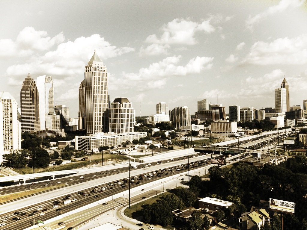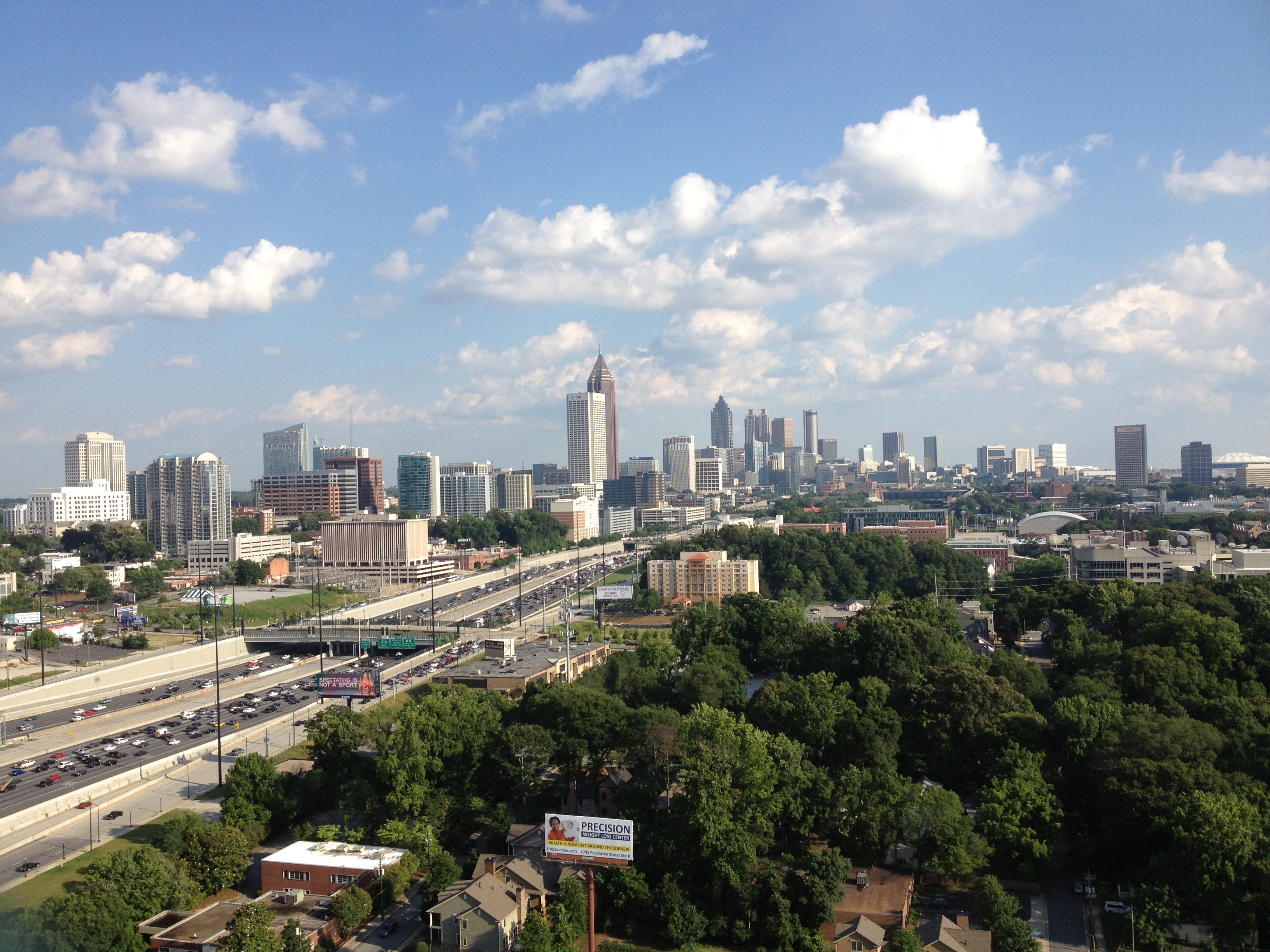 A view of the city from the rooftop terrace at Atlantic Station